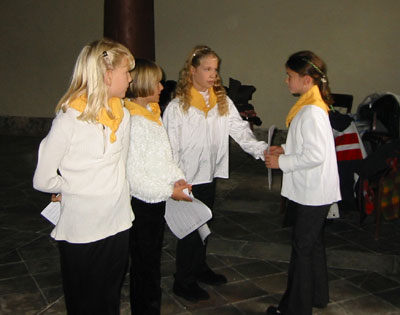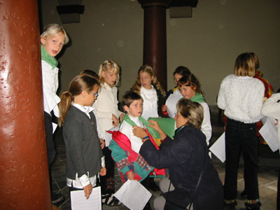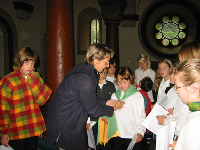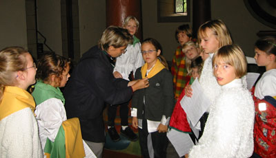 | Kurz vor der Messe wurden die Halstücher verteilt. | |