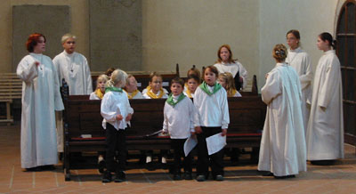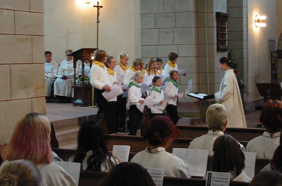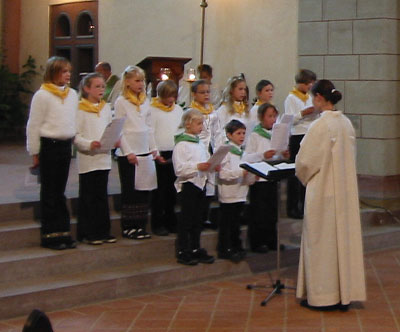 Ein voll konzentrierter A- und B-Chor beim Kyrie der Kleinen Messe für Kinder.