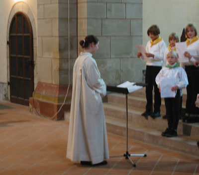 | Chorleiterin Stephanie Jung beim Einsingen. | |