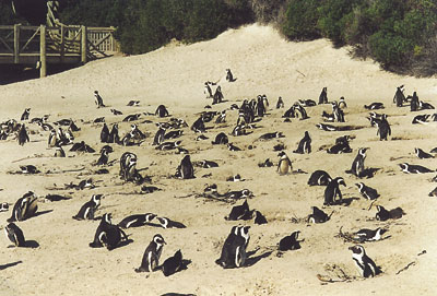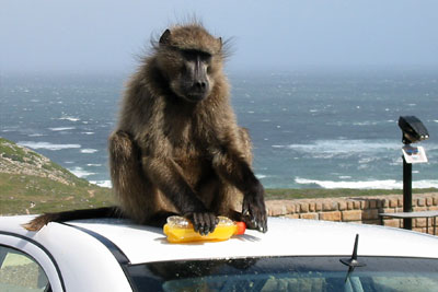 Unsere Gasteltern brachten uns um 8.00 Uhr zu der Primary School wo der Bus schon auf uns wartete. Zuerst besuchten wir eine Pinguinfarm. Wir fanden die Tiere alle sehr knuffig und konnten gar nicht glauben als uns erzählt wurde, dass die Schnäbel der Pinguine so scharf wie Rasierklingen sind. So mussten wir uns wohl oder übel mit dem Streicheln der sehr zutraulichen Tiere zurückhalten. Dann ging es weiter. Unser nächster Ausflugspunkt war Cape Point. Wir mussten ziemlich lange Bus fahren, was in Südafrika sehr normal ist, da die Entfernungen viel größer sind, als in Deutschland. Am Cape Point angekommen wurden wir mit Regen und Sturm empfangen. Wir blieben aber trotzdem hart und nahmen den langen Weg bergauf bis auf die Aussichtsplattform auf uns. Die wundervolle Aussicht belohnte unsere Mühen. Lange hielten wir es dort oben allerdings nicht aus, da der Wind immer stärker wurde. Also gingen wir wieder zum Bus zurück, wo einige von uns gleich nette Bekanntschaften mit den dort freilaufenden Affen machten. Die waren nämlich so frech und schnappten sich das leckere Käsebrötchen von Herrn Heiter und die Orangensaftflasche von Mandy. Dieses Mahl nahmen sie genüsslich auf einem weißen Mercedes zu sich.