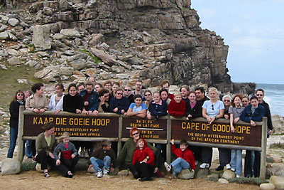 Nach der langwierigen Aktion: Gruppenfoto am Cape Point setzten wir unsere Tour fort. Das Kap der Guten Hoffnung, unser nächstes Ziel, begeisterte uns alle. Das Kap der Guten Hoffnung, das früher auch Kap der Stürme genannt wurde, ist ein Felsvorsprung am westlichen Südende der Kaphalbinsel. Von dort aus hatten wir einen schönen Ausblick über den Atlantik, dessen Brandungswellen gewaltig waren. Leider erfuhren wir dort, dass wir den Tafelberg nicht besuchen können, da die Seilbahn aufgrund des schlechten Wetters gesperrt war. So wurde kurzerhand unser Tagesplan Richtung Waterfront umgestaltet. Nach dem Shoppen ging es dann zurück zu unseren Gasteltern mit denen wir unseren letzten Abend in Kapstadt verbrachten. Sarah Ackermann |