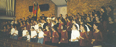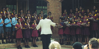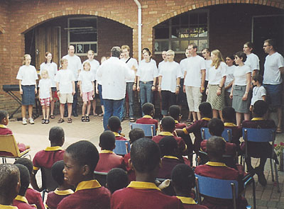 Um 9:15 Uhr fuhren wir zu der Morekolodi Primary School. Die Schüler erfreuten uns mit einem kleinen Konzert. Hierzu einige Zitate: Die waren knuffig!; Das Konzert hätte länger dauern können!; Es ist beeindruckend, was die so auf die Beine stellen; Da wird jeder deutsche Grundschullehrer neidisch!; Die Kinder haben ja eine enorme Ausstrahlung! Als Dank gaben wir zum Abschied auch etwas zum Besten. Anschließend fuhren wir nach Kempton Park, wo wir uns auf unser Konzert mit dem East Rand Youth Choir (Kempton Park) und dem La Choraline & La Monnaie Youth Choir (Belgien) vorbereiteten. Dieser Abend zeigte uns wie fest unsere Gemeinschaft ist. Es war das erste Mal auf der ganzen Tournee, dass wir Versagensängste hatten, aber wir schafften die Bewältigung dieser Gefühle in unserer Chorfamilie, und erlebten so an diesem Abend, dass ein Publikum dies und die viele Arbeit, die wir investierten, durchaus bemerkte und zu würdigen wusste. Nach dem Konzert wurden wir in unsere Gastfamilien aufgeteilt. Eva-Maria Karras |