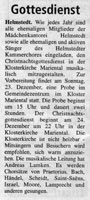 Musikalische Gestaltung des Christnachtsgottesdienstes durch Ehemalige der Mädchenkantorei Helmstedt und Ehemalige und Aktive des Helmstedter Kammerchores