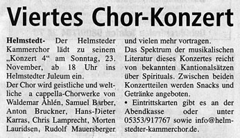 Sonntag, 23. November 2008, 18.00 Uhr, Helmstedter Juleum
