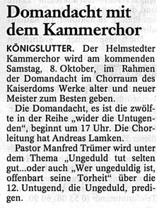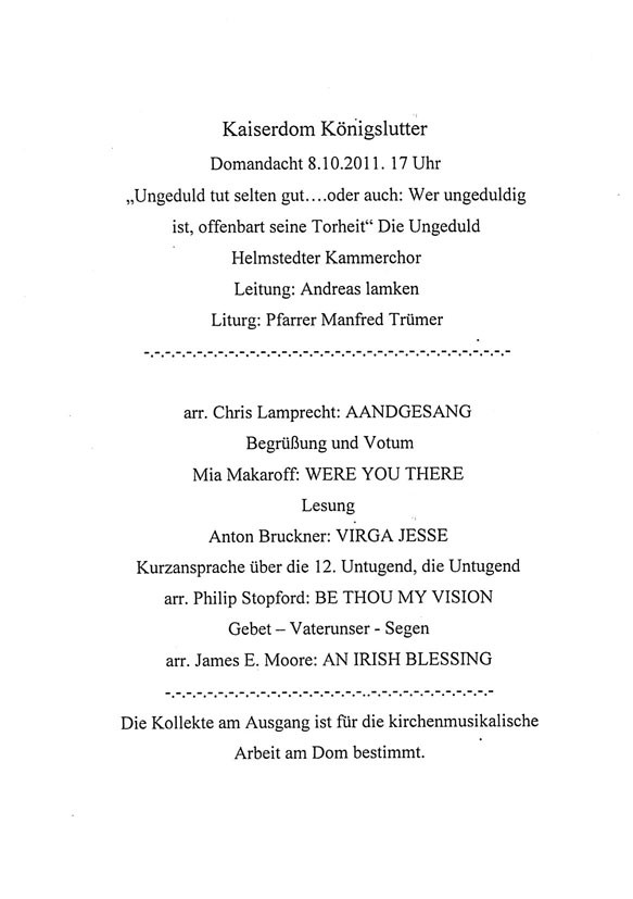 Samstag, 8. Oktober 2011, 17.00 Uhr, Kaiserdom Königslutter