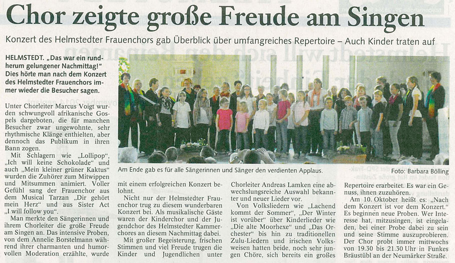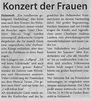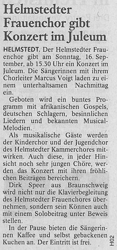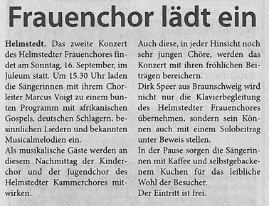 Mitwirkung bei einem Konzert des Helmstedter Frauenchores