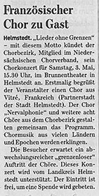 Teilnahme am Chorkonzert LIEDER OHNE GRENZEN
