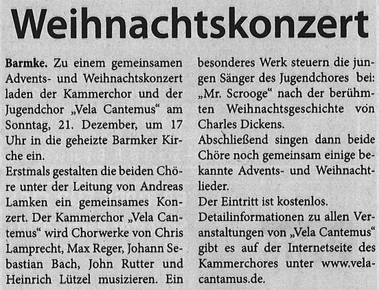 21. Dezember 2014, 17.00 Uhr - Kirche in Barmke