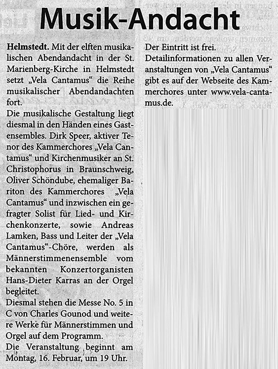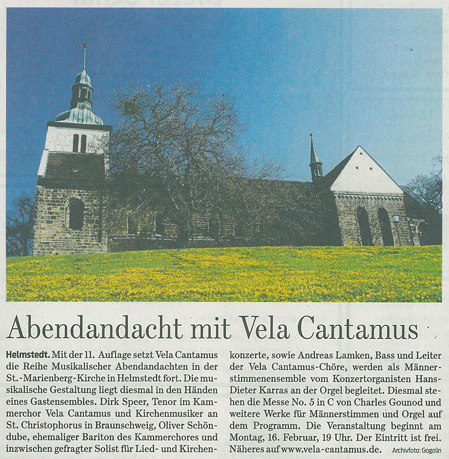16. Februar 2015, 19.00 Uhr - St. Marienberg, Helmstedt