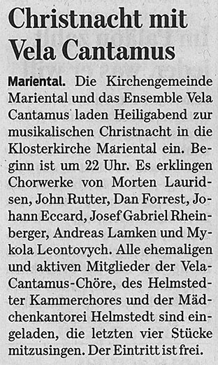 Musikalischer Festgottesdienst zur Christnacht