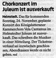 | 3. Ankündigung | AUSVERKAUFT 2019-11-22 Braunschweiger Zeitung |