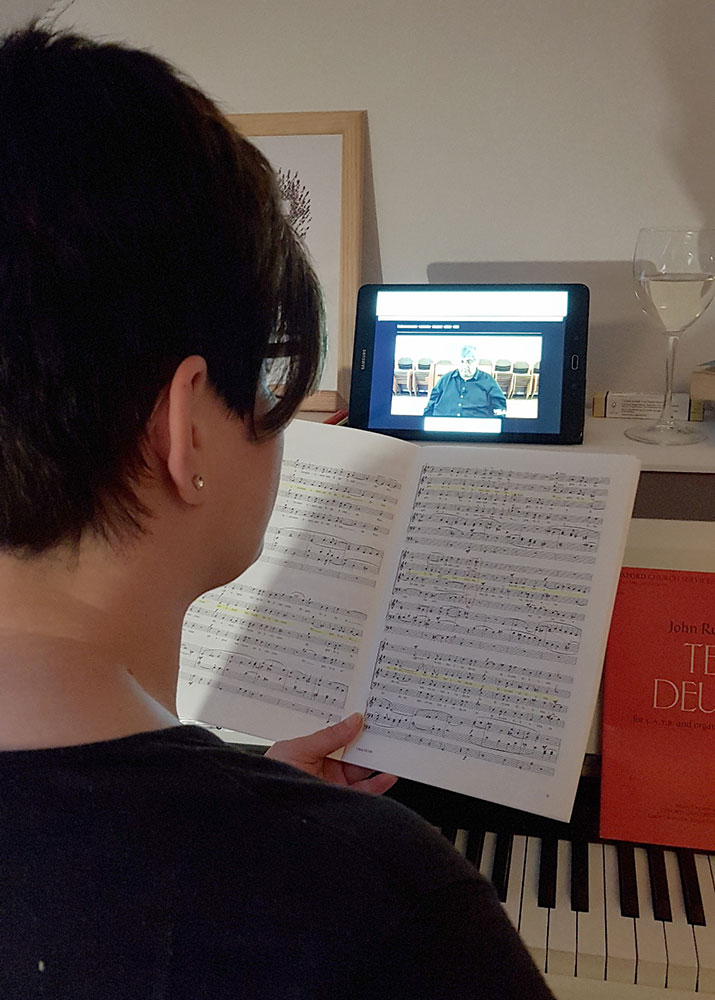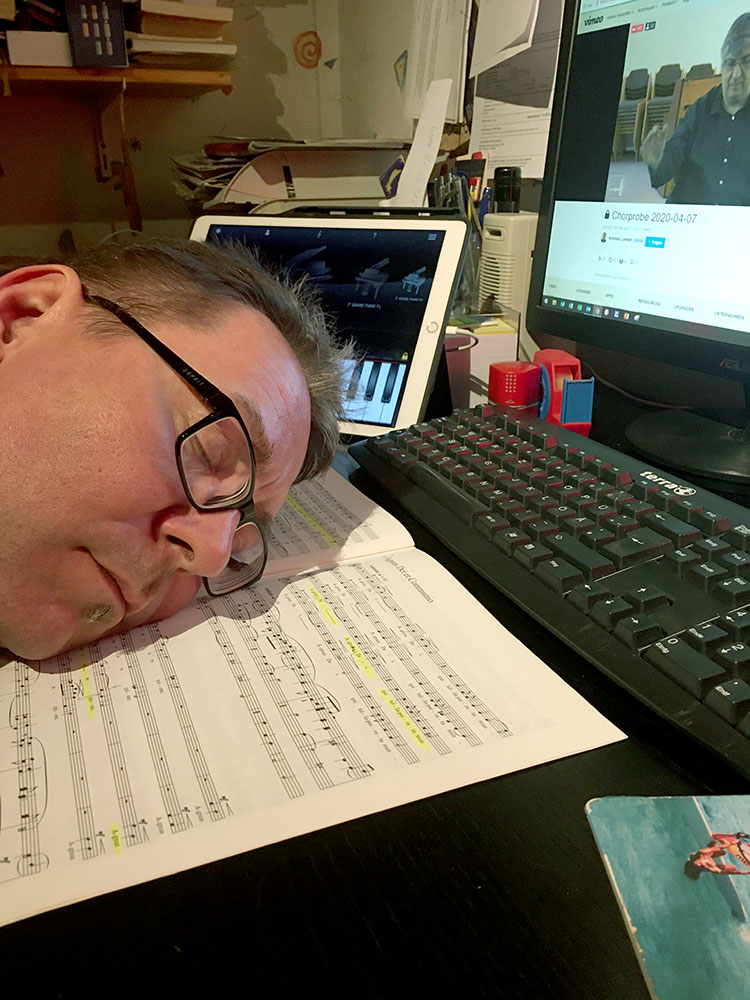 Wir alle vermissen die gemeinsame Probenarbeit sehr. Physische Zusammenkünfte kommen aus gutem Grund nicht in Frage. Dennoch müssen die Stimmen trainiert und die Stücke erlernt werden.