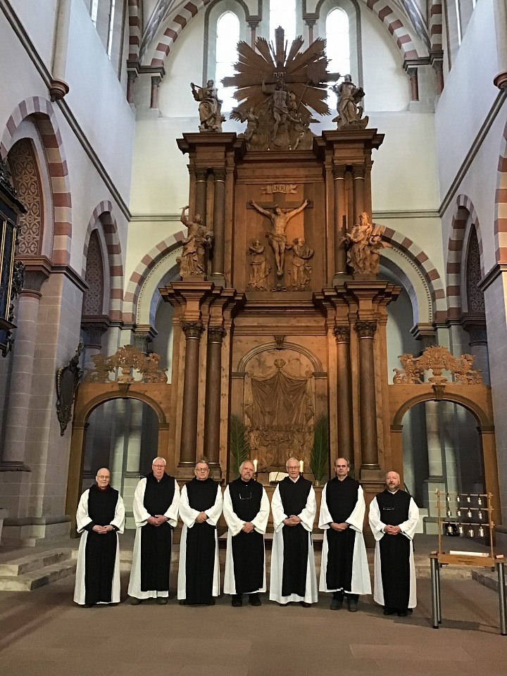 Der gregorianische Choral in ausdrucksstarker DarbietungDie Männerschola Gregoriana der Klosterkirche bestand früher aus „ad hoc“ zusammengestellten Männerstimmen aus den Chören und dem Freundeskreis von Kantor Hans-Dieter Karras. Am 3. März 2012 fand ein mit über 45 Interessenten besuchter „Schnupperkurs“ für Frauen und Männer in der Frauenkapelle der Klosterkirche Riddagshausen mit Kantor Karras statt. Daraus entstand eine Männerschola mit festen Mitgliedern. Seit dem 19. Mai 2012 probt die Männerschola nun regelmäßig und war von Anfang an eine gute Gemeinschaft. Die Männerschola tritt in Nachbildungen der Zisterziensischen Ordenstracht auf, welche die Mönche In unserer Klosterkirche St. Maria Riddagshausen getragen haben und uns von der Bürgerschaft Riddagshausen gestiftet wurden. Kantor Hans-Dieter Karras studierte Gregorianischen Gesang bei Godehard Joppich im Benediktiner-Kloster Münsterschwarzach und wir singen gregorianischen Choral deshalb in einer Mischung aus der Tradition der Benediktiner von Münsterschwarzach, dem Vorbild des Gregorianik-Experten Prof. Dieter Klöckner (Essen) und den Erfahrungen der Arbeit mit Maria Jonas (Ars Choralis Coeln). Wir suchen dringend weitere Chorbrüder. Die Proben finden Samstags von 9:30-10:30 Uhr in der Frauenkapelle der Klosterkirche statt.